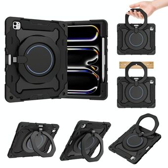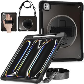For iPad Pro 13 2024 Heavy Duty Hybrid Tablet Case with Hand Grip & Strap(Black)