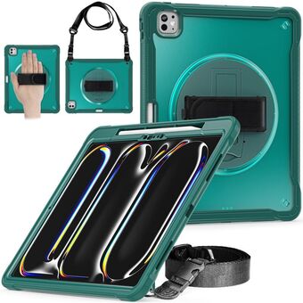 For iPad Pro 13 2024 Heavy Duty Hybrid Tablet Case with Hand Grip & Strap(Dark Green)