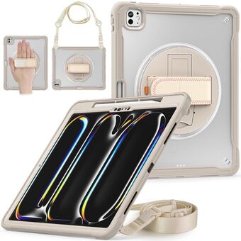 For iPad Pro 13 2024 Heavy Duty Hybrid Tablet Case with Hand Grip & Strap(Khaki)