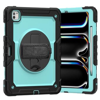 For iPad Pro 13 2024 Silicone Hybrid PC Tablet Case with Shoulder Strap(Light Blue + Black)