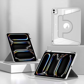 For iPad Pro 13 2024 2 in 1 Acrylic Split Rotating Leather Tablet Case(Pink)