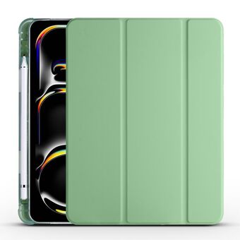 For iPad Pro 13 2024 3-fold TPU Leather Smart Tablet Case with Pen Slot(Matcha Green)