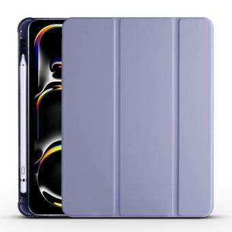 For iPad Pro 13 2024 3-fold TPU Leather Smart Tablet Case with Pen Slot(Lavender Purple)