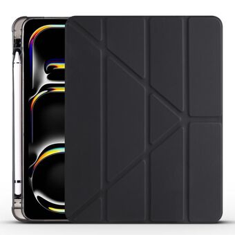 For iPad Pro 13 2024 Multi-folding TPU Leather Smart Tablet Case with Pen Slot(Black)