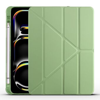 For iPad Pro 13 2024 Multi-folding TPU Leather Smart Tablet Case with Pen Slot(Matcha Green)