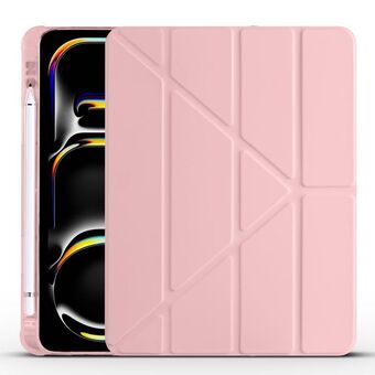 For iPad Pro 13 2024 Multi-folding TPU Leather Smart Tablet Case with Pen Slot(Pink)