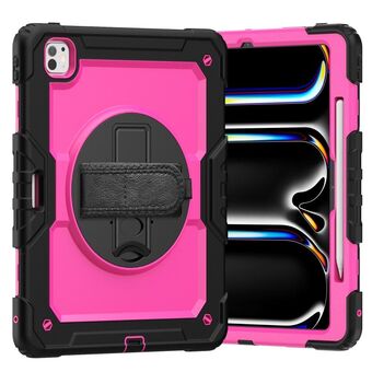 For iPad Pro 13 2024 Silicone Hybrid PC Tablet Case with Shoulder Strap(Rose Red + Black)
