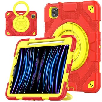 For iPad Pro 11 2022 / 2021 / 2020 Spider Rotation Handle Silicone Hybrid PC Tablet Case(Red Yellow)