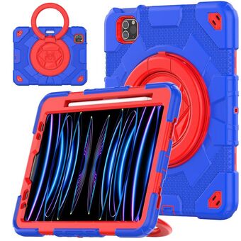 For iPad Pro 11 2022 / 2021 / 2020 Spider Rotation Handle Silicone Hybrid PC Tablet Case(Blue Red)