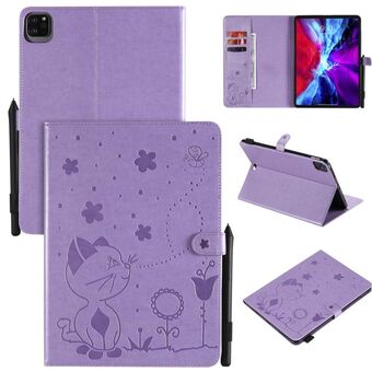 For iPad Pro 11 (2020) & (2018) Cat Bee Embossing Pattern Horizontal Flip Leather Tablet Case with Holder & Card Slots & Wallet & Pen Slot & Wake-up / Sleep Function(Purple)