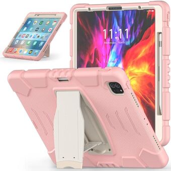 For iPad Pro 12.9 inch (2020) Shockproof Colorful Silicon + PC Protective Tablet Case with Holder & Shoulder Strap & Hand Strap (Rose Red)