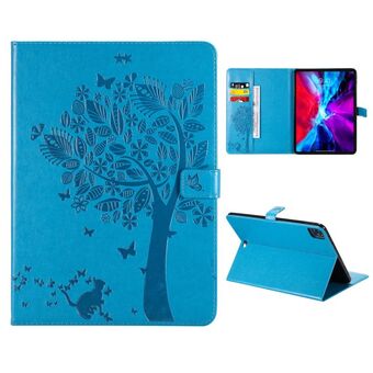 For iPad Pro 11 (2020) Pressed Printing Cat and Tree Pattern Horizontal Flip Leather Tablet Case with Holder & Card Slots & Wallet(Blue)