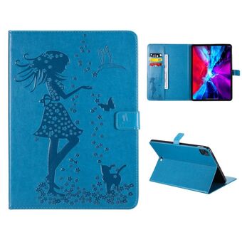 For iPad Pro 11 (2020) Pressed Printing Woman and Cat Pattern Horizontal Flip Leather Tablet Case with Holder & Card Slots & Wallet(Blue)