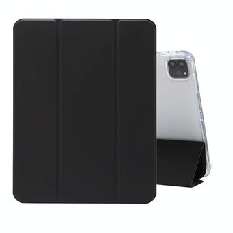 For iPad Pro 11 2022 / 2021 Three-folding Electric Pressed Skin Texture Horizontal Flip Shockproof Transparent TPU + PU Leather Tablet Case with Holder & Pen Slot & Sleep / Wake-up Function(Black)