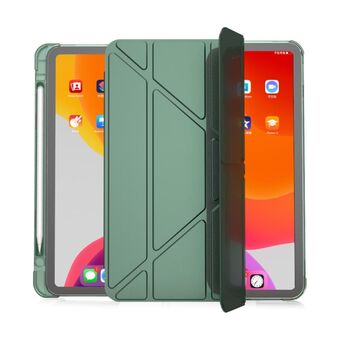 For iPad Pro 11 2022 / 2021 / 2020 Multi-folding Horizontal Flip PU Leather + TPU Aitbag Shockproof Half Paste Tablet Case with Holder & Pen Slot & Sleep / Wake-up Function(Deep Green)
