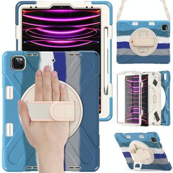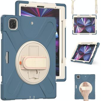 For iPad Pro 12.9 2022 / 2021 360 Degree Rotation PC + TPU Protective Tablet Case with Holder & Hand-strap(Blue)