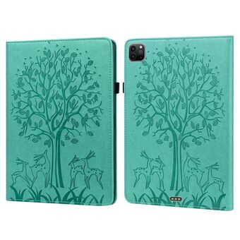 For iPad Pro 11 2022 / 2021 / 2020 Electric Pressed TPU Leather Tablet Case(Green Flower)