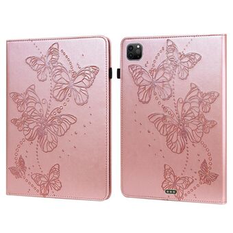 For iPad Pro 11 2022 / 2021 / 2020 Sewing Pen Slot Leather Tablet Case(Butterflies)