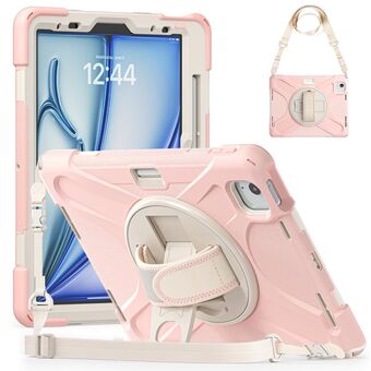 For iPad Air 11 2024 / Air 5 10.9 2022 / Air 4 10.9 2020 / Pro 11 2022 /2021 / 2018 / 2020 Silicone + PC Protective Tablet Case with Holder & Shoulder Strap(Colorful Pink)