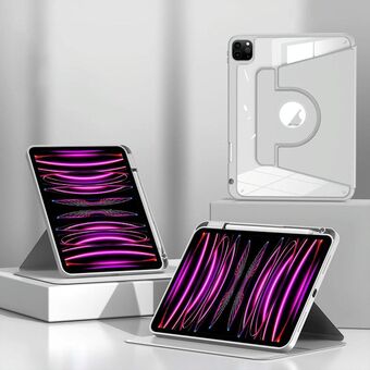 For iPad Pro 11 2022 / 2021 / 2020 / 2018 Deformation Transparent Acrylic Horizontal Flip PU Leather Tablet Case with Multi-folding Holder & Sleep / Wake-up Function & Pen Slot(Rose Gold)