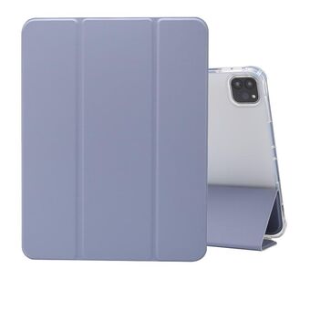 For iPad Pro 11 2022 / 2021 Three-folding Electric Pressed Skin Texture Horizontal Flip Shockproof Transparent TPU + PU Leather Tablet Case with Holder & Pen Slot & Sleep / Wake-up Function(Lavender)