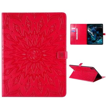 For iPad Pro 11 (2020) Pressed Printing Sunflower Pattern Horizontal Flip PU Leather Tablet Case with Holder & Card Slots & Wallet(Red)