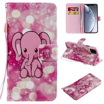 For iPhone 11 Pro Max Painted Pattern Horizontal Flip Leather Case, with Wallet & Holder & Card Slots & Lanyard(Pink Elephant)