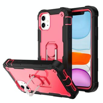 For iPhone 11 PC + Rubber 3-layers Shockproof Protective Case with Rotating Holder (Black + Rose Red)