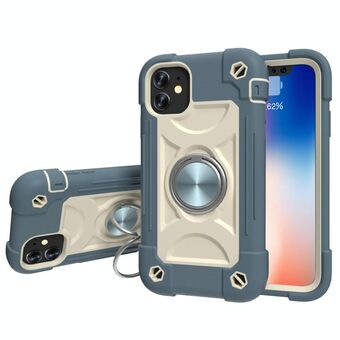 For iPhone 11 PC + Rubber 3-layers Shockproof Protective Case with Rotating Holder (Grey White + Mint Green)