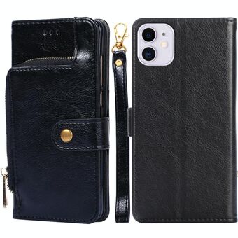 For iPhone 11 For iPhone 11 Buckle Zipper Shockproof Protective Case with Holder & Card Slots & Wallet & Lanyard & Photos Frame(Coffee)