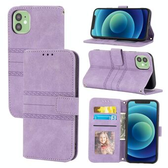 For iPhone 11 Embossed Striped Magnetic Buckle PU + TPU Horizontal Flip Leather Case with Holder & Card Slot & Wallet & Photo Frame & Sling (Purple)
