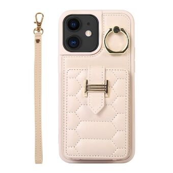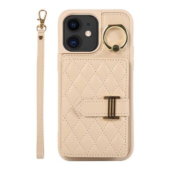 For iPhone 11 Horizontal Card Bag Ring Holder Phone Case with Dual Lanyard(Beige)