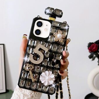 For iPhone 11 Crossbody Perfume Bottle Handmade Inlaid Diamond PC Phone Case(Black)