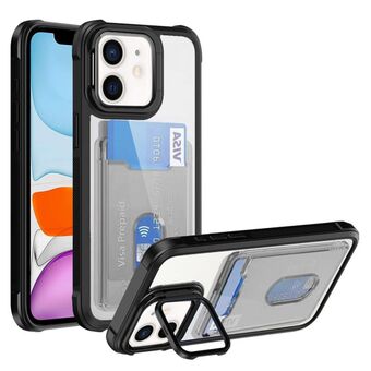 For iPhone 11 Card Bag Holder Acrylic Hybrid TPU Phone Case(Black)