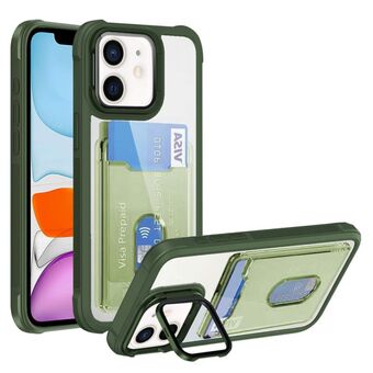 For iPhone 11 Card Bag Holder Acrylic Hybrid TPU Phone Case(Green)
