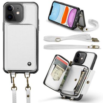 For iPhone 11 JEEHOOD C22 Series Zipper Wallet Leather Phone Case with Dual Lanyard(White) (JEEHOOD)