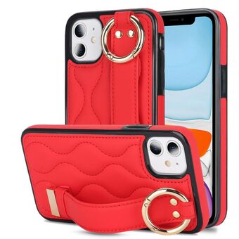 For iPhone 11 Non-slip Full Coverage Ring PU Phone Case with Wristband(Red)