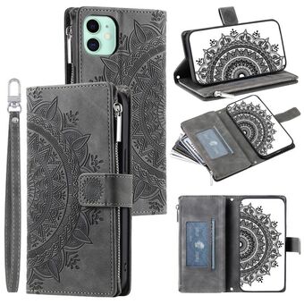 For iPhone 11 Multi-Card Totem Zipper Leather Phone Case(Grey)