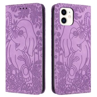 For iPhone 11 Flower Embossing Pattern Shockproof Protective Case with Holder & Card Slots & Photo Frame (Purple)