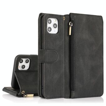 For iPhone 11 JEEHOOD C22 Series Zipper Wallet Leather Phone Case with Dual Lanyard(Black) (JEEHOOD)