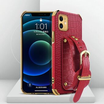 For iPhone 11 Electroplated TPU Crocodile Pattern Leather Case with Wrist Strap (Red)