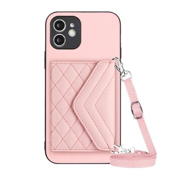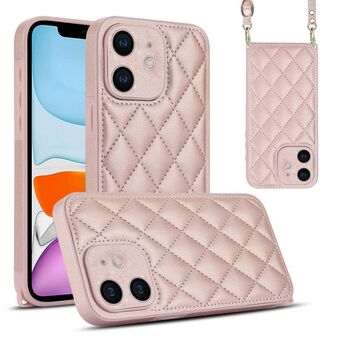 For iPhone 11 Rhombic Texture Phone Case with Dual Lanyard(Rose Gold)