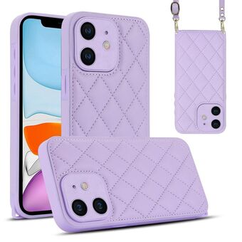 For iPhone 11 Rhombic Texture Phone Case with Dual Lanyard(Purple)