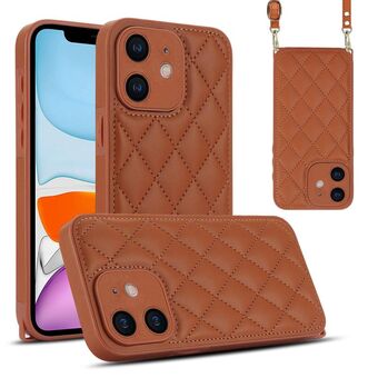 For iPhone 11 Rhombic Texture Phone Case with Dual Lanyard(Brown)