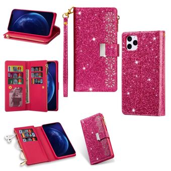 For iPhone 11 Multi-card Slots Starry Sky Laser Carving Glitter Zipper Horizontal Flip Leather Case with Holder & Wallet & Lanyard(Rose Red)