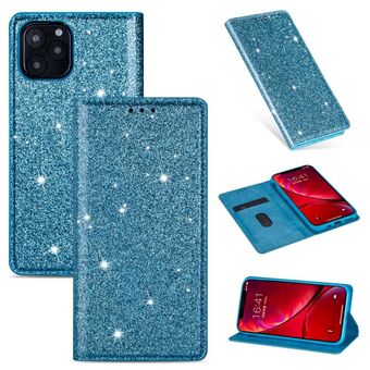 For iPhone 11 Ultrathin Glitter Magnetic Horizontal Flip Leather Case with Holder & Card Slots(Sky Blue)