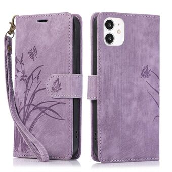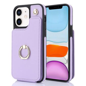 For iPhone 11 Organ Card Bag Ring Holder PU Phone Case with Lanyard(Purple)