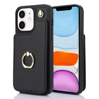 For iPhone 11 Organ Card Bag Ring Holder PU Phone Case with Lanyard(Black)
