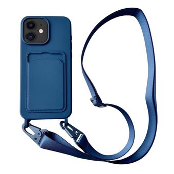For iPhone 11 Card Slot Liquid Silicone Phone Case with Lanyard(Royal Blue)