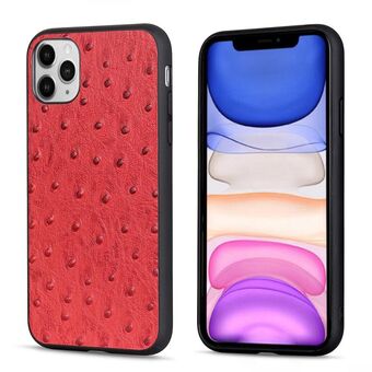 Θήκη προστασίας από γνήσιο δέρμα με υφή στρουθοκάμπου για iPhone 11 (Μαύρο)